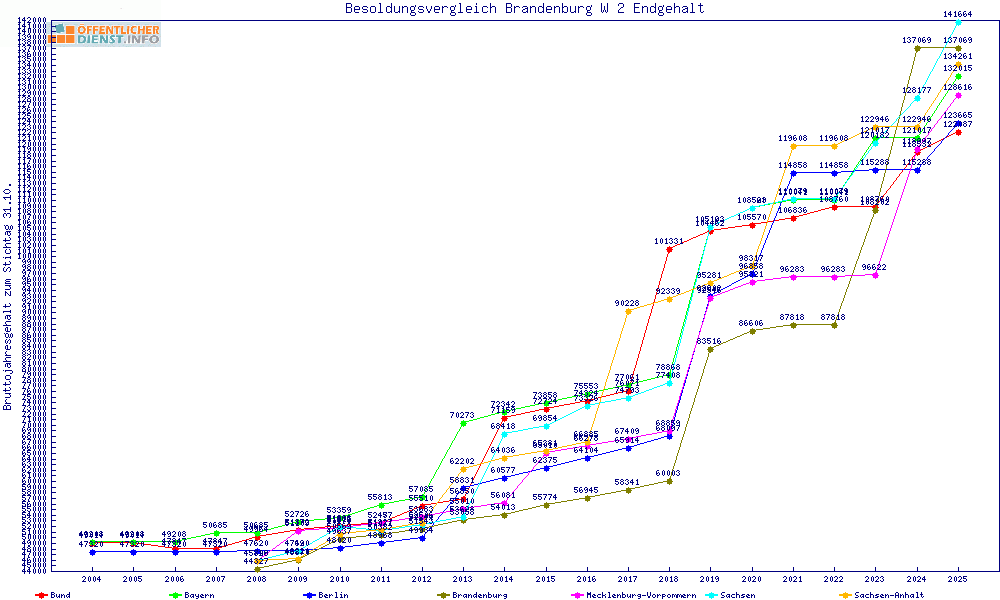 | Sachsen | 140.264 € | +3194 € | +2.3% | +13444 € | +10.6% | ||