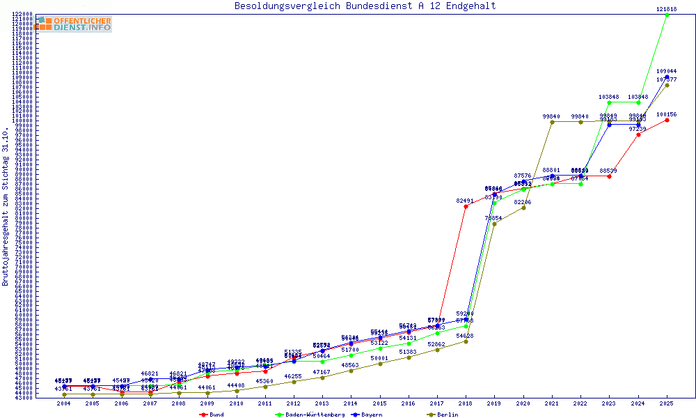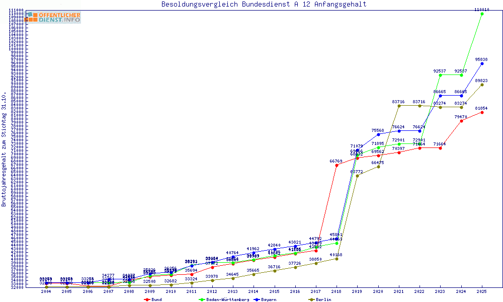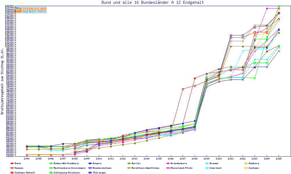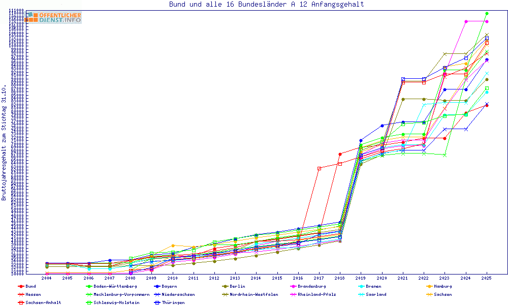 | Besoldungsvergleich A 12 im Jahr 2025 | Anfangsgehalt | ||||||