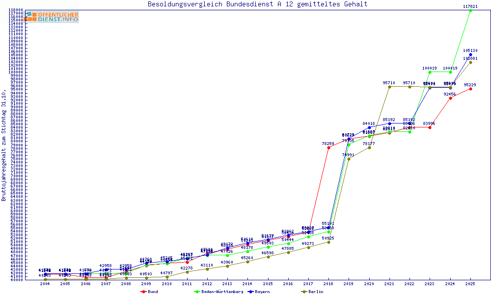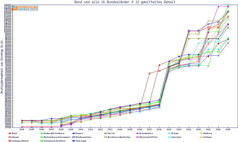 | Besoldungsvergleich A 12 im Jahr 2025 | gemitteltes Gehalt | ||||||
