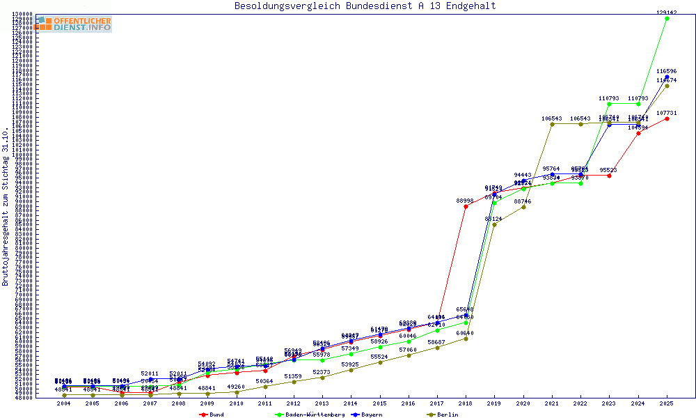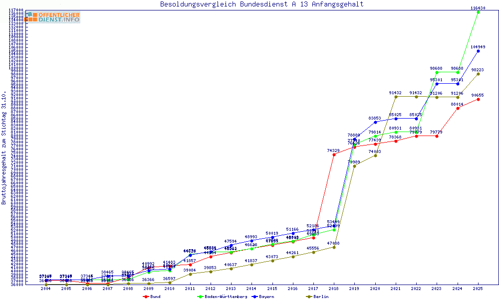 | Besoldungsvergleich A 13 im Jahr 2025 | Anfangsgehalt | ||||||