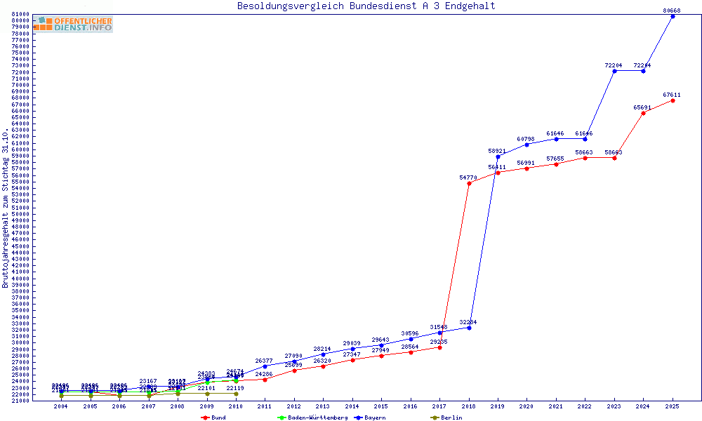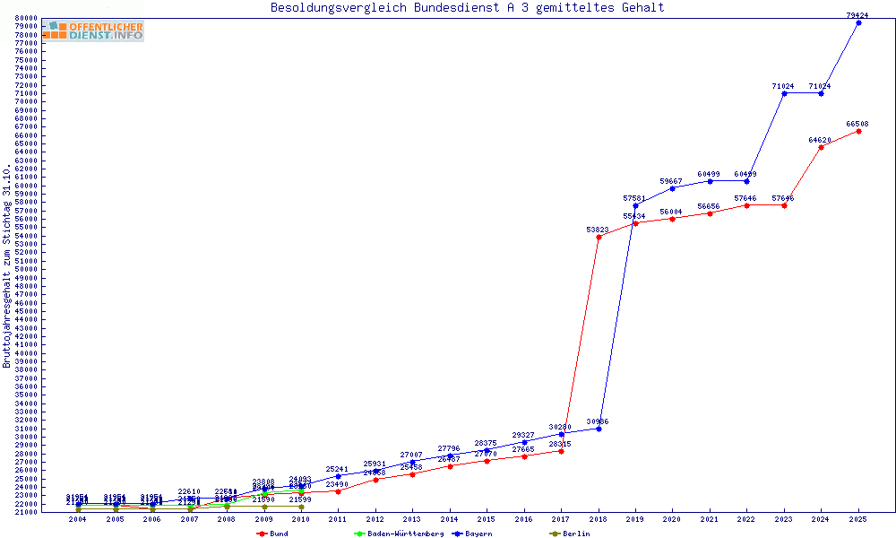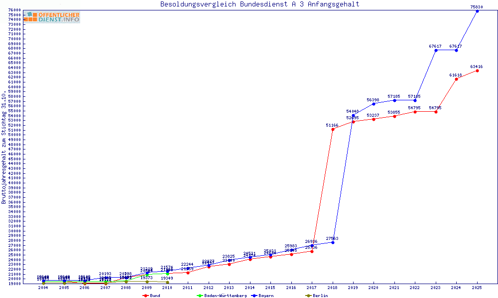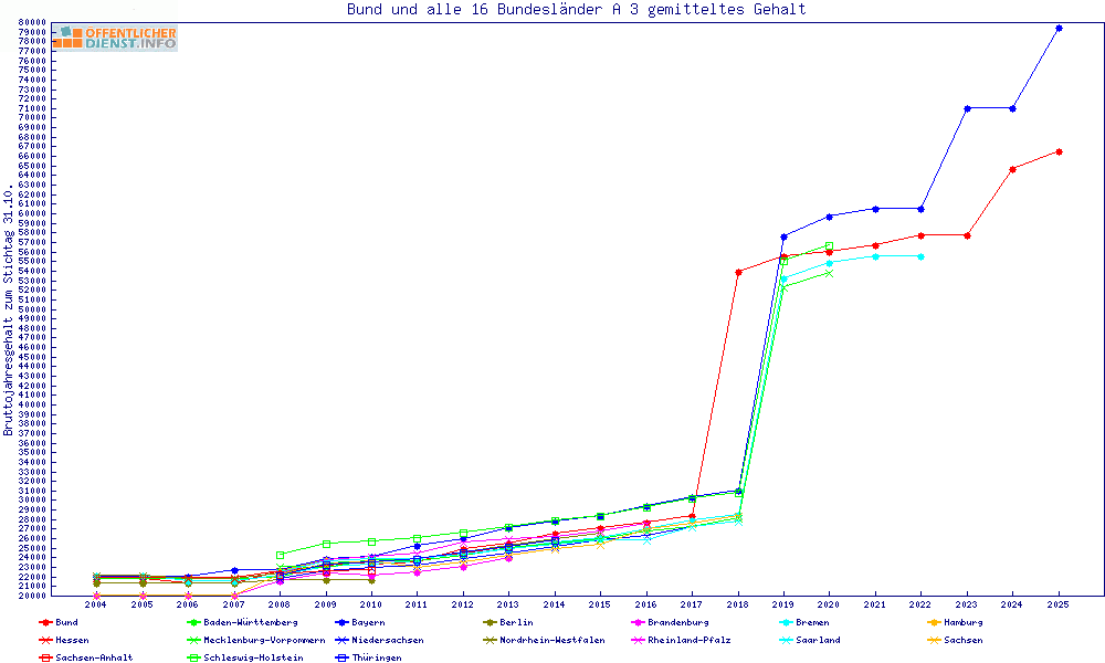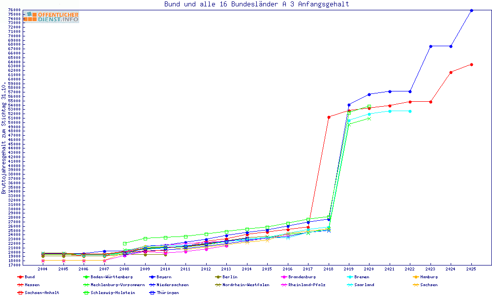 | Besoldungsvergleich A 3 im Jahr 2025 | gemitteltes Gehalt | ||||||