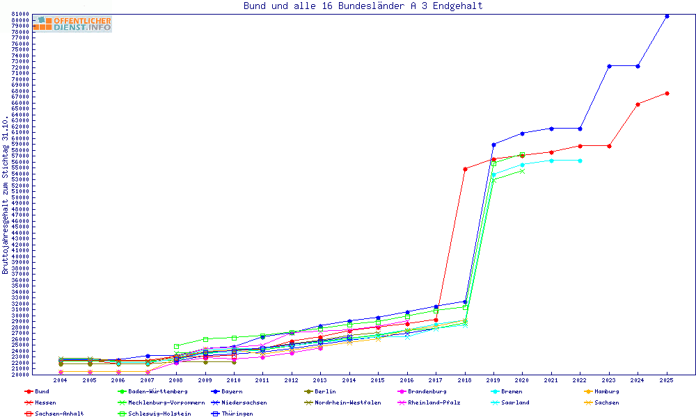 | Besoldungsvergleich A 3 im Jahr 2025 | Endgehalt | |||||||