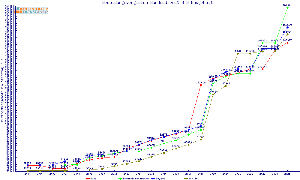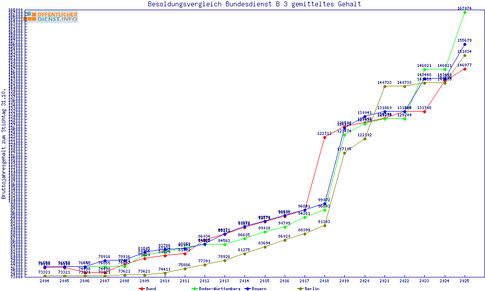 | Besoldungsvergleich B 3 im Jahr 2025 | gemitteltes Gehalt | ||||||