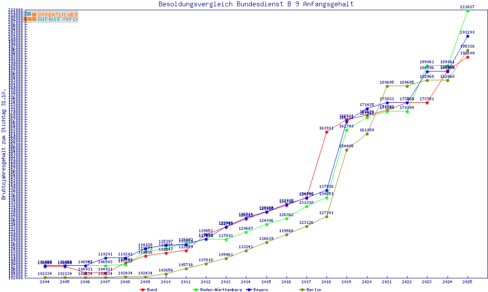 | Besoldungsvergleich B 9 im Jahr 2025 | Anfangsgehalt | ||||||
