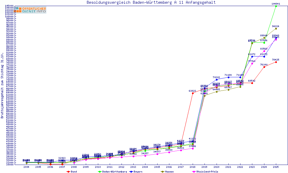 | Besoldungsvergleich A 11 im Jahr 2025 | Anfangsgehalt | ||||||