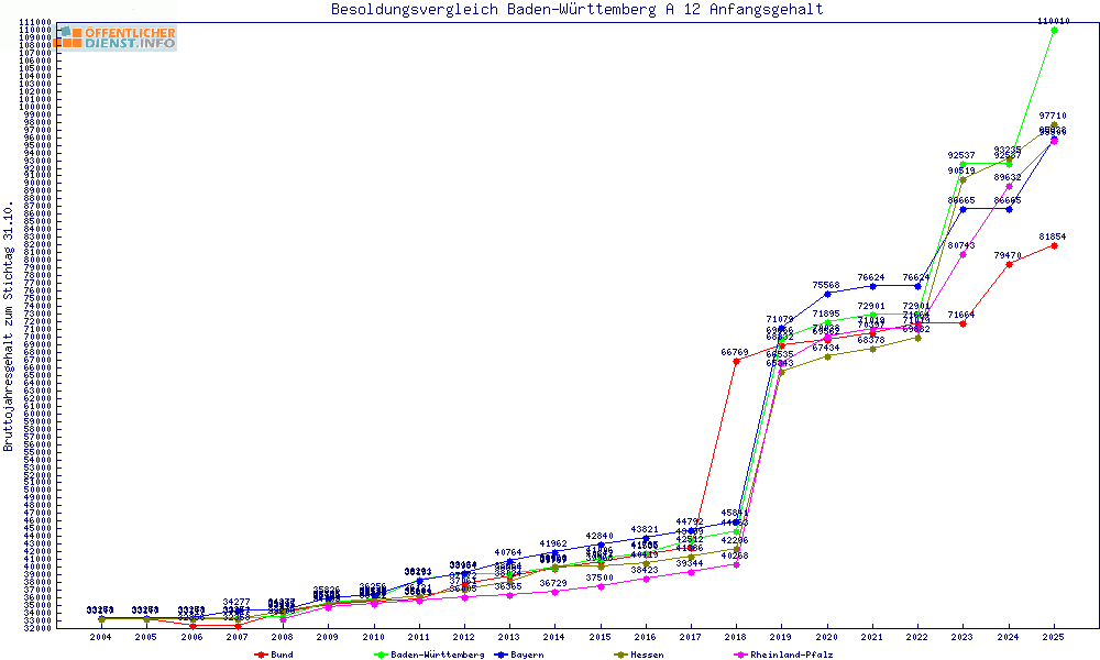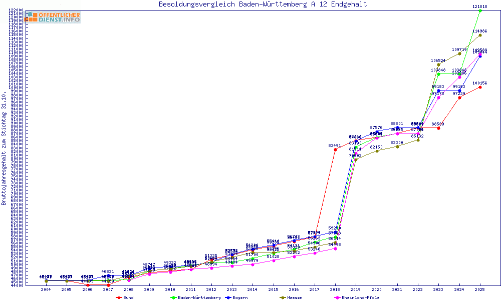 | Besoldungsvergleich A 12 im Jahr 2025 | Anfangsgehalt | ||||||