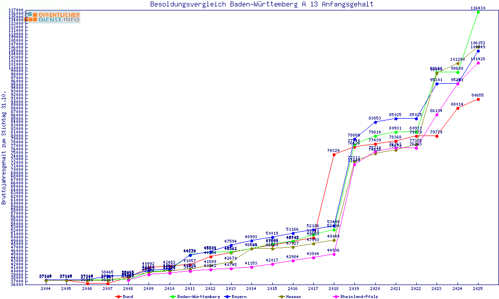 | Besoldungsvergleich A 13 im Jahr 2025 | Anfangsgehalt | ||||||