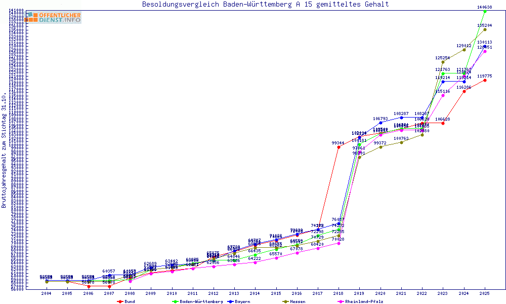 | Besoldungsvergleich A 15 im Jahr 2025 | gemitteltes Gehalt | ||||||