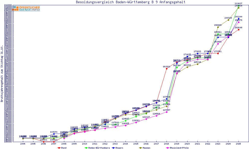 | Besoldungsvergleich B 9 im Jahr 2025 | Anfangsgehalt | ||||||