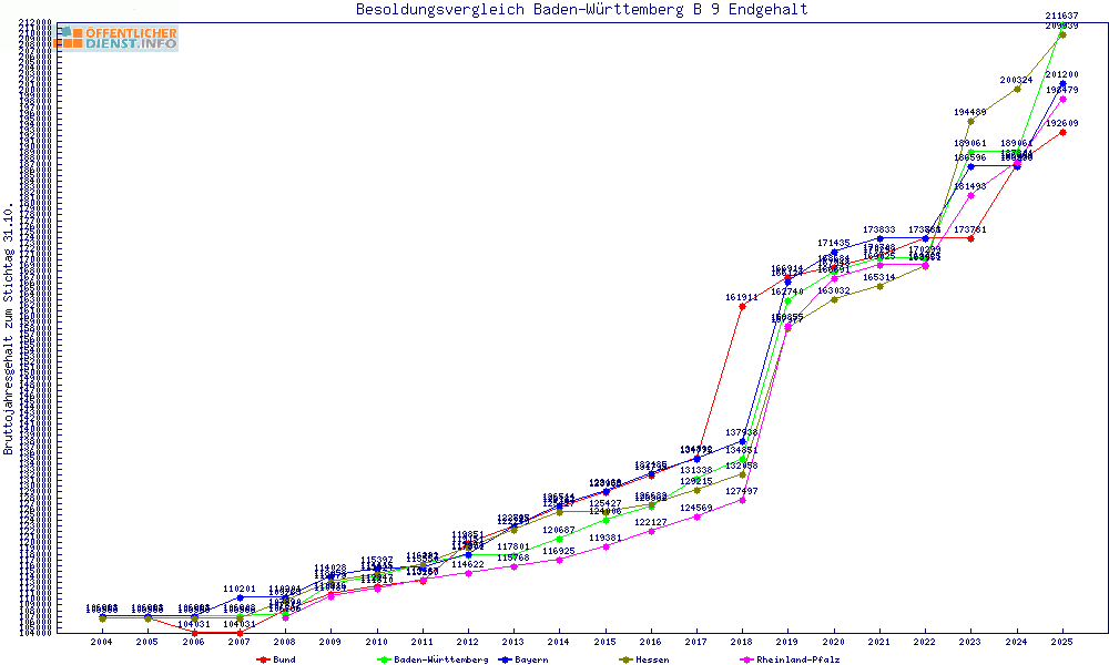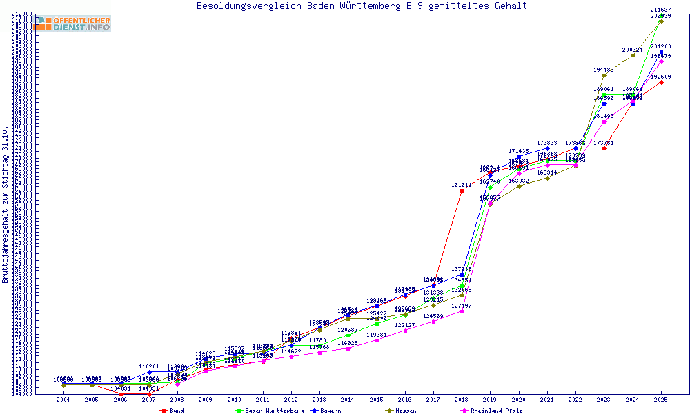 | Besoldungsvergleich B 9 im Jahr 2025 | gemitteltes Gehalt | ||||||