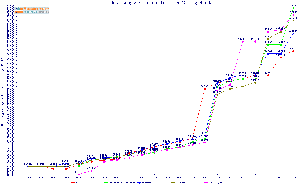 | Besoldungsvergleich A 13 im Jahr 2025 | Anfangsgehalt | ||||||