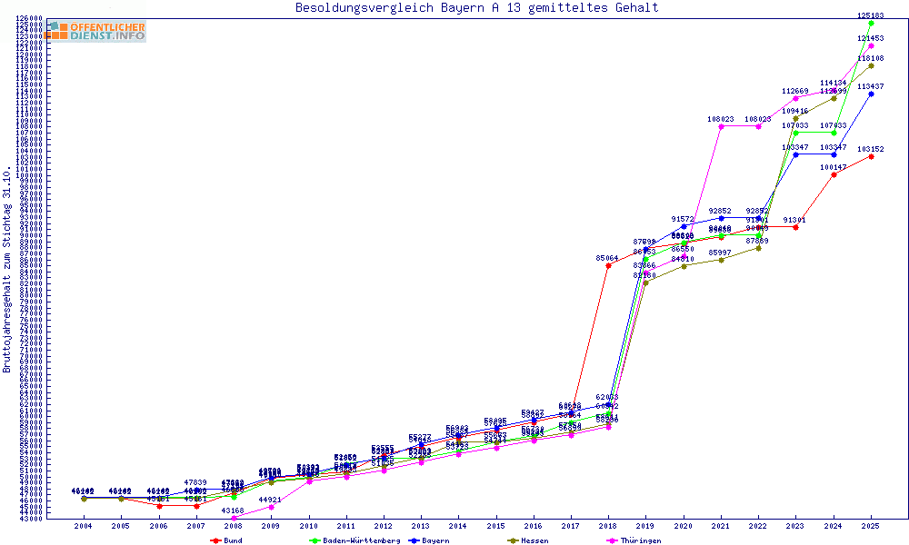 | Besoldungsvergleich A 13 im Jahr 2025 | gemitteltes Gehalt | ||||||