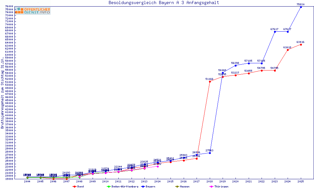graphischer Besoldungsvergleich gemitteltes Gehalt aller Bundesländer