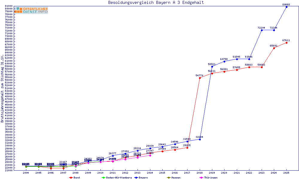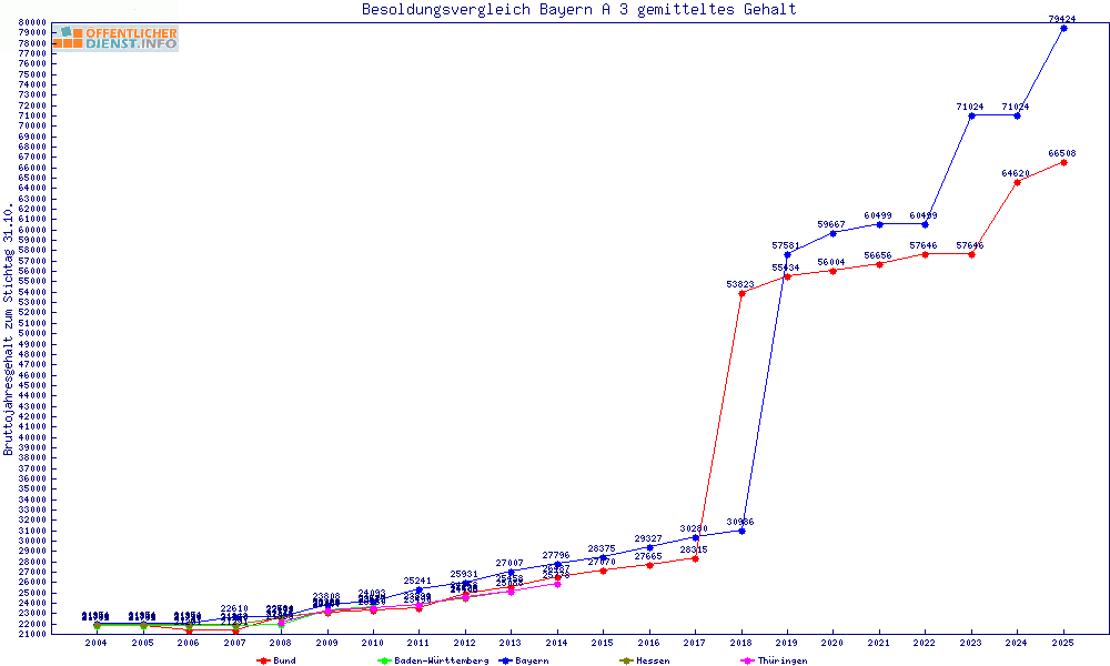 | Besoldungsvergleich A 3 im Jahr 2025 | gemitteltes Gehalt | ||||||
