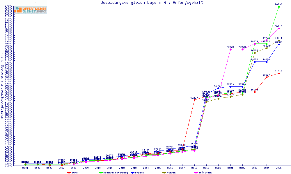 | Besoldungsvergleich A 7 im Jahr 2025 | Anfangsgehalt | ||||||
