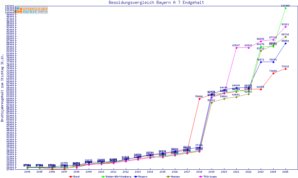 | Besoldungsvergleich A 7 im Jahr 2025 | Endgehalt | |||||||