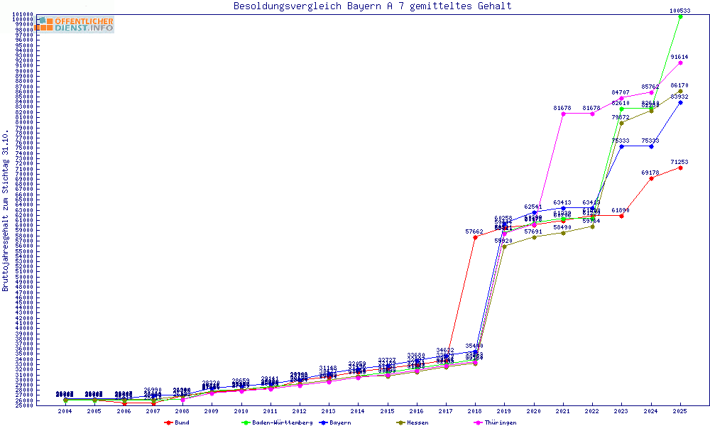 | Besoldungsvergleich A 7 im Jahr 2025 | gemitteltes Gehalt | ||||||