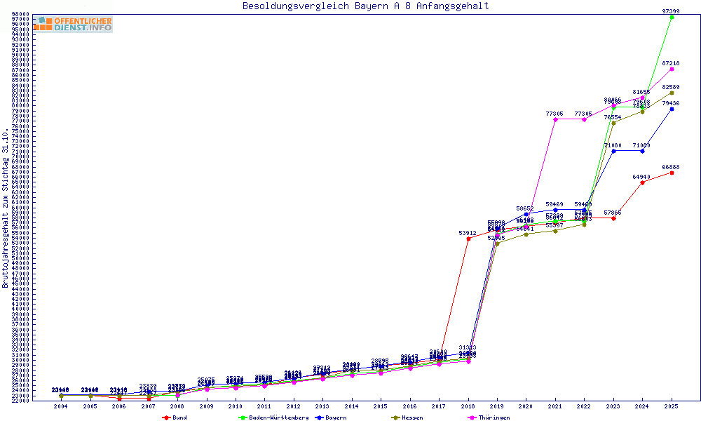 | Besoldungsvergleich A 8 im Jahr 2025 | Anfangsgehalt | ||||||