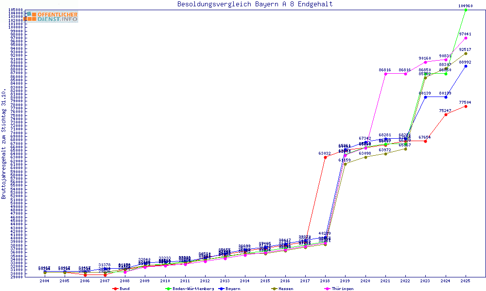 | Besoldungsvergleich A 8 im Jahr 2025 | Endgehalt | |||||||