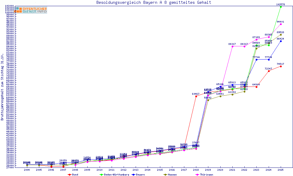| Besoldungsvergleich A 8 im Jahr 2025 | gemitteltes Gehalt | ||||||