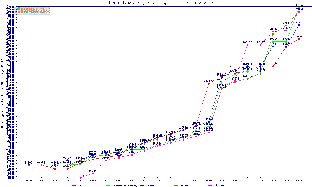 | Besoldungsvergleich B 6 im Jahr 2025 | Anfangsgehalt | ||||||