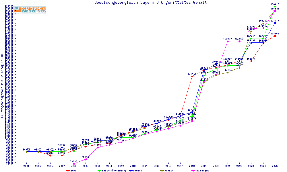 | Besoldungsvergleich B 6 im Jahr 2025 | gemitteltes Gehalt | ||||||