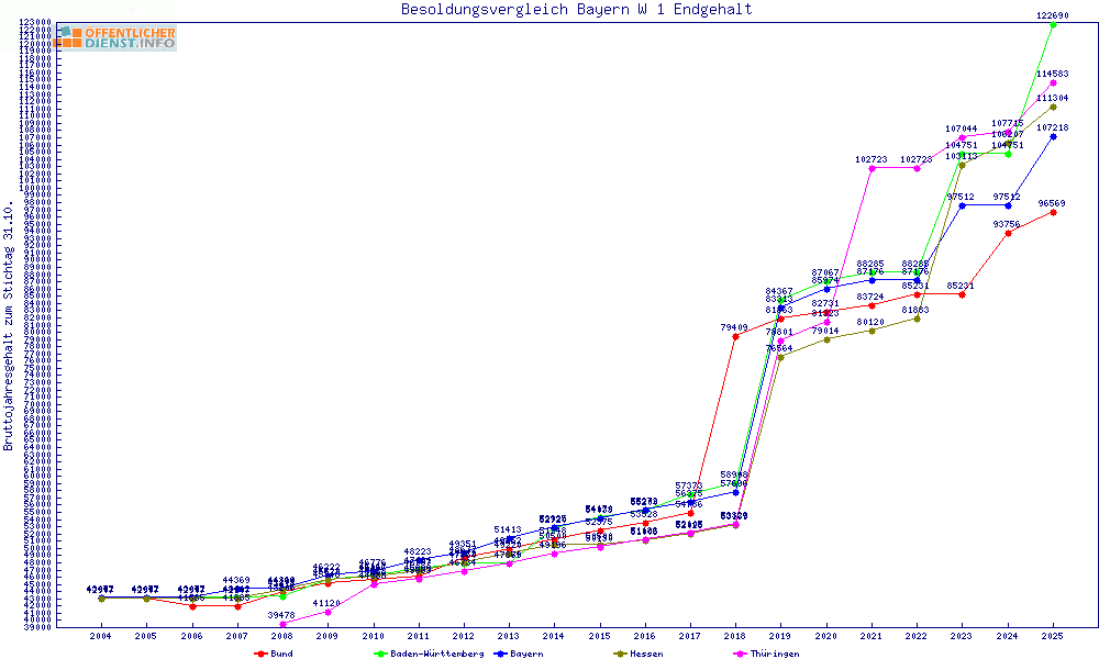 | Besoldungsvergleich W 1 im Jahr 2025 | Anfangsgehalt | ||||||