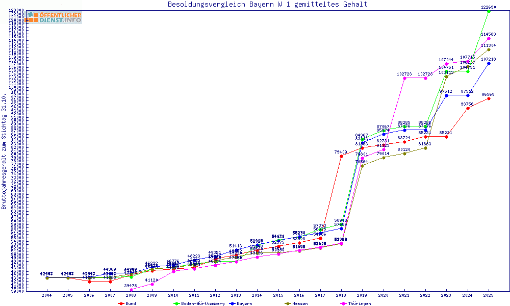 | Besoldungsvergleich W 1 im Jahr 2025 | gemitteltes Gehalt | ||||||