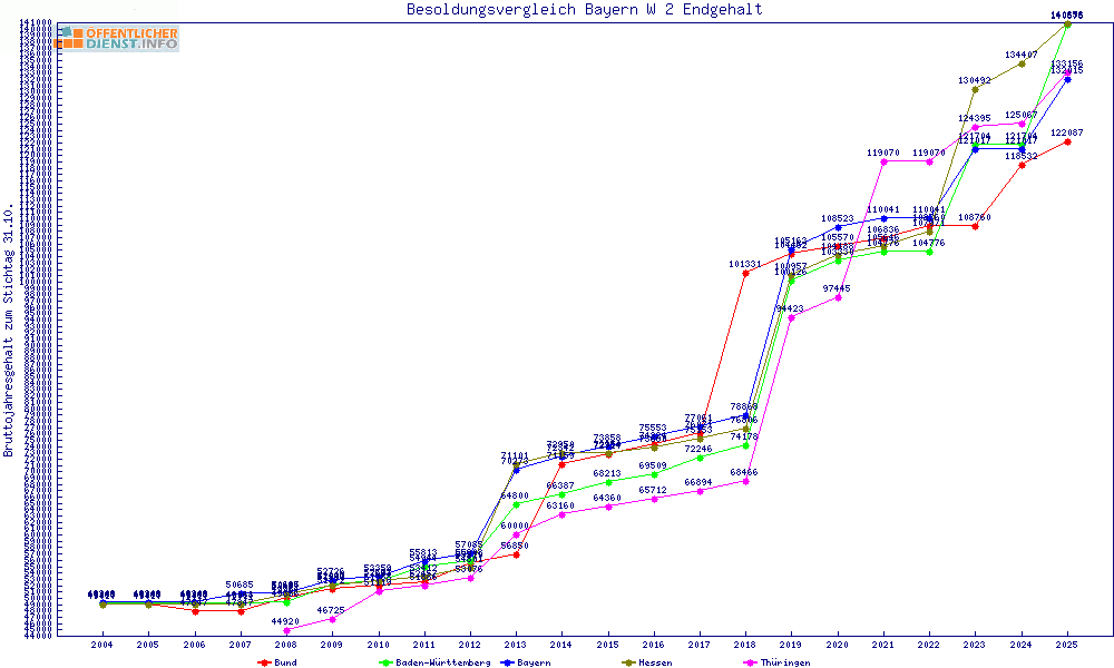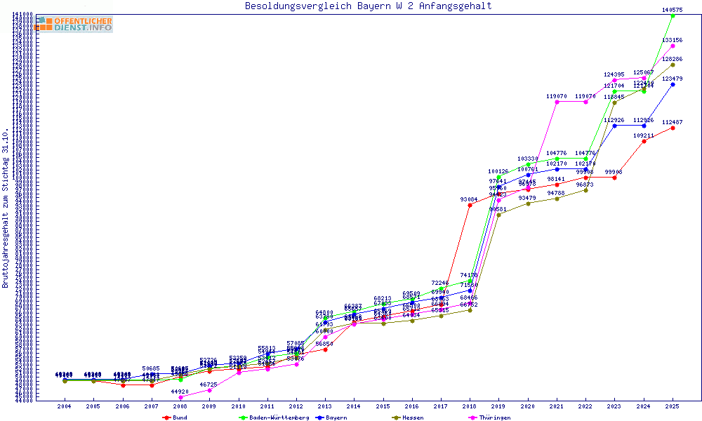 | Besoldungsvergleich W 2 im Jahr 2025 | Anfangsgehalt | ||||||