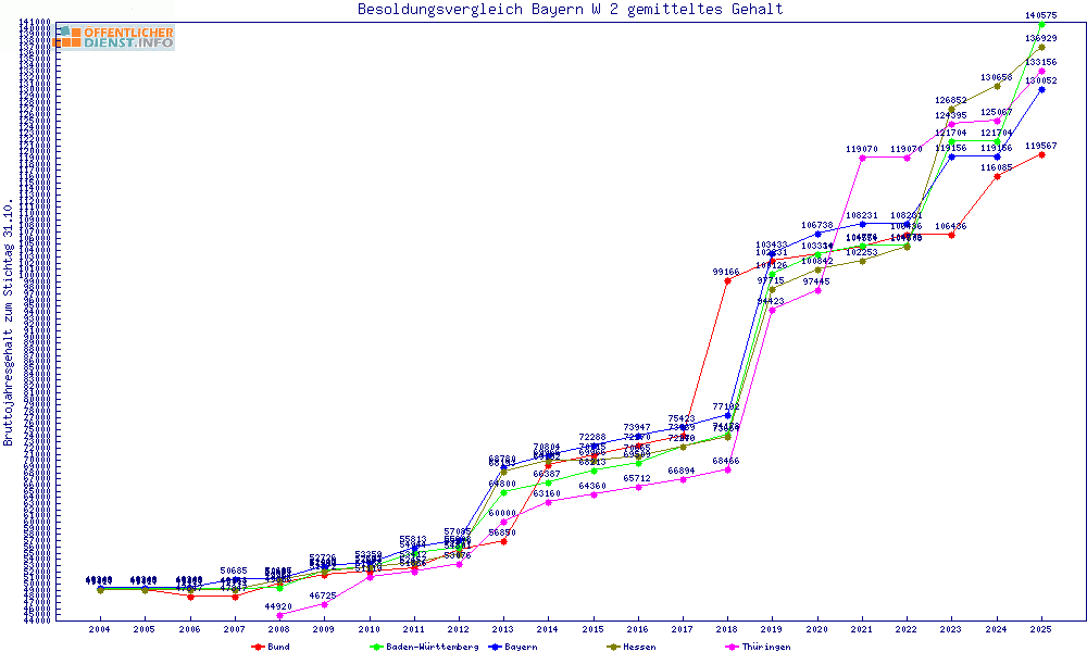 | Besoldungsvergleich W 2 im Jahr 2025 | gemitteltes Gehalt | ||||||