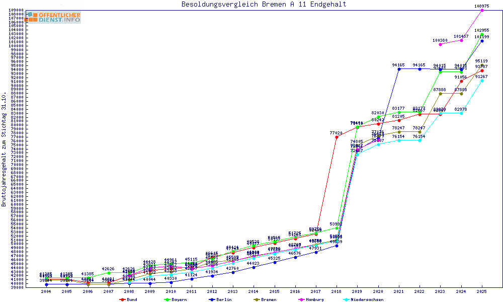 | Besoldungsvergleich A 11 im Jahr 2025 | gemitteltes Gehalt | ||||||