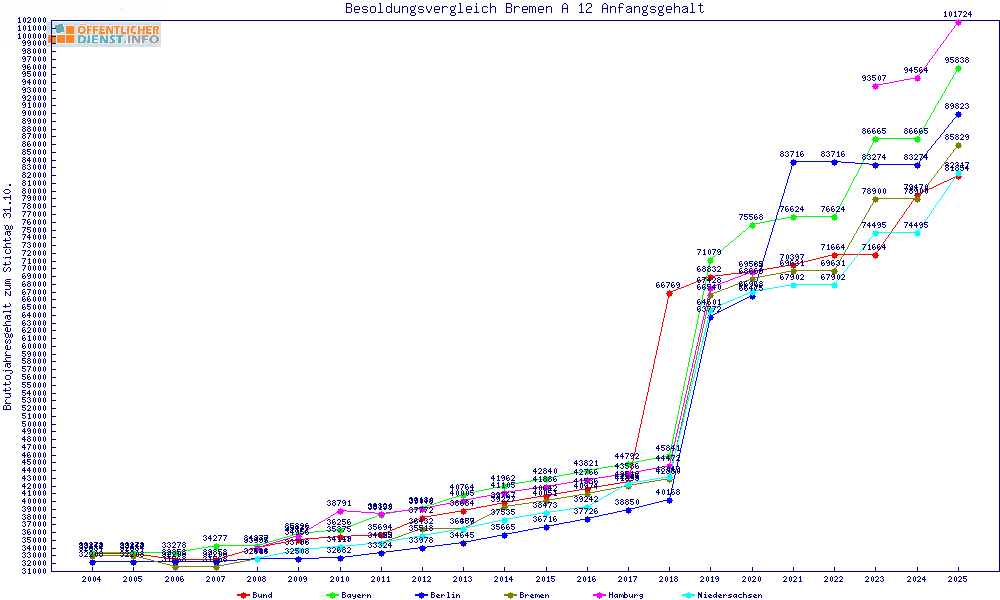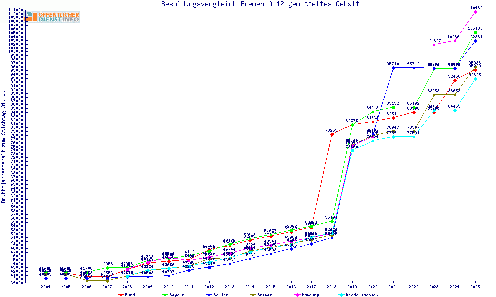 | Jahresgehalt brutto | im Vergleich mit Bremen |