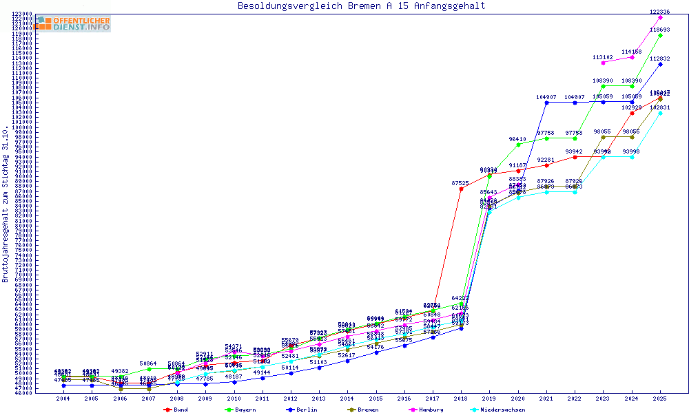 | Jahresgehalt brutto | im Vergleich mit Bremen |