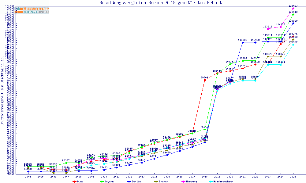 | Besoldungsvergleich A 15 im Jahr 2025 | gemitteltes Gehalt | ||||||