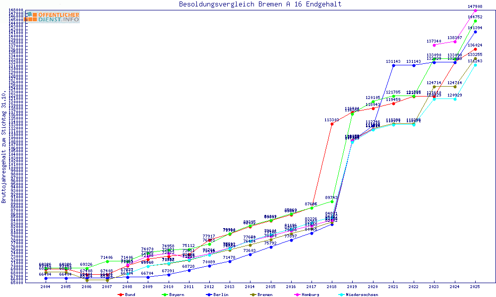 | Besoldungsvergleich A 16 im Jahr 2025 | Anfangsgehalt | ||||||