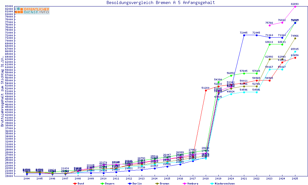 | Besoldungsvergleich A 5 im Jahr 2025 | Anfangsgehalt | ||||||