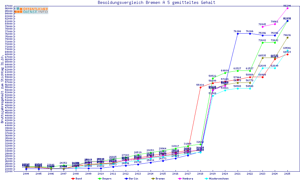 | Besoldungsvergleich A 5 im Jahr 2025 | gemitteltes Gehalt | ||||||