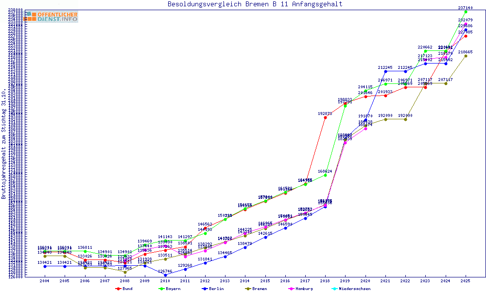 | Besoldungsvergleich B 11 im Jahr 2025 | Anfangsgehalt | ||||||