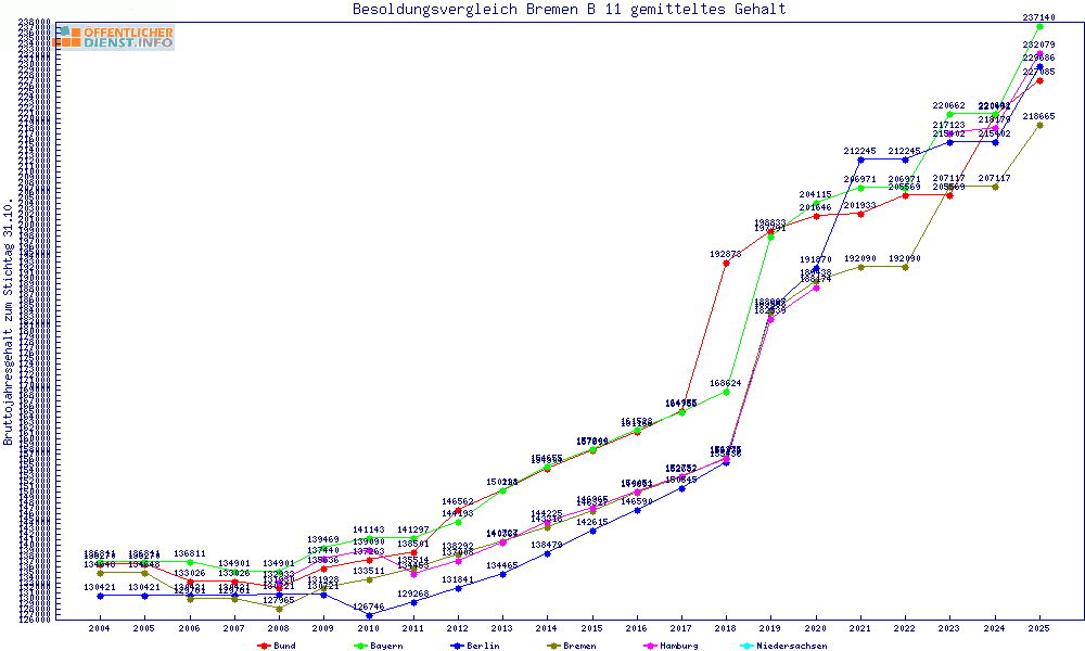 | Besoldungsvergleich B 11 im Jahr 2025 | gemitteltes Gehalt | ||||||