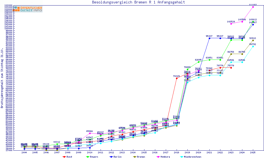 | Besoldungsvergleich R 1 im Jahr 2025 | Anfangsgehalt | ||||||