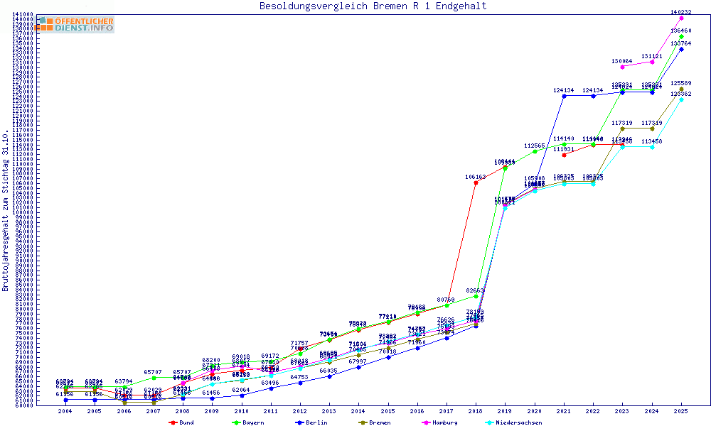 | Jahresgehalt brutto | im Vergleich mit Bremen |