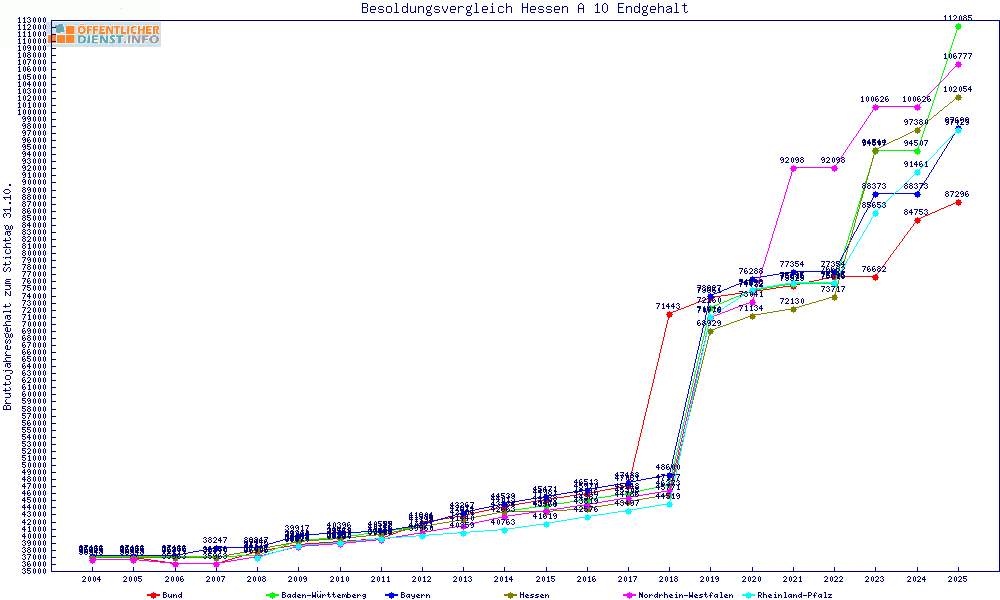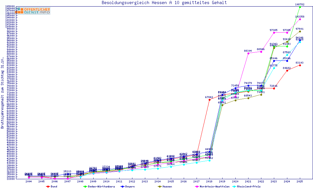 | Besoldungsvergleich A 10 im Jahr 2025 | Anfangsgehalt | ||||||