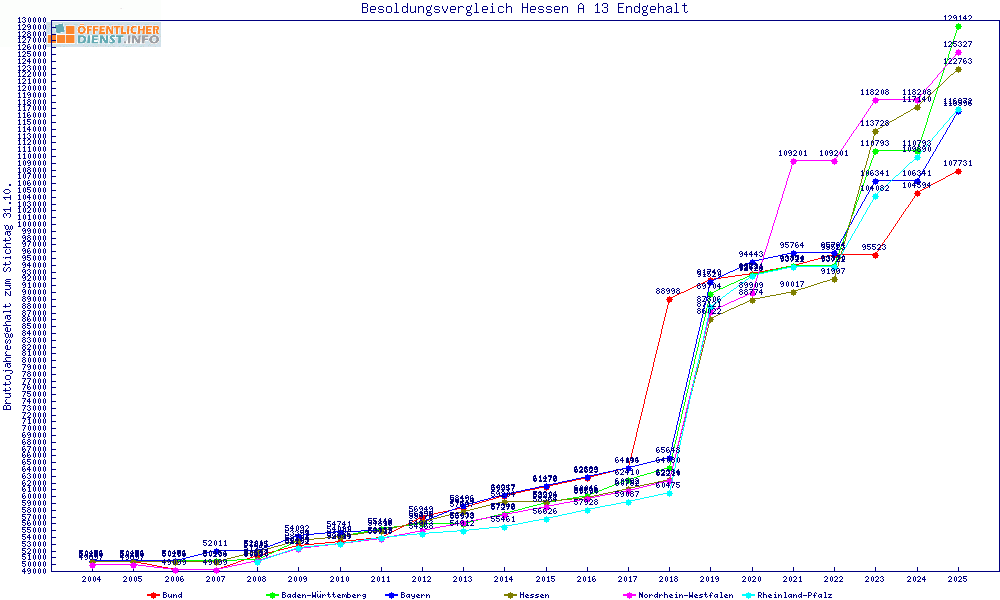 | Besoldungsvergleich A 13 im Jahr 2025 | Anfangsgehalt | ||||||