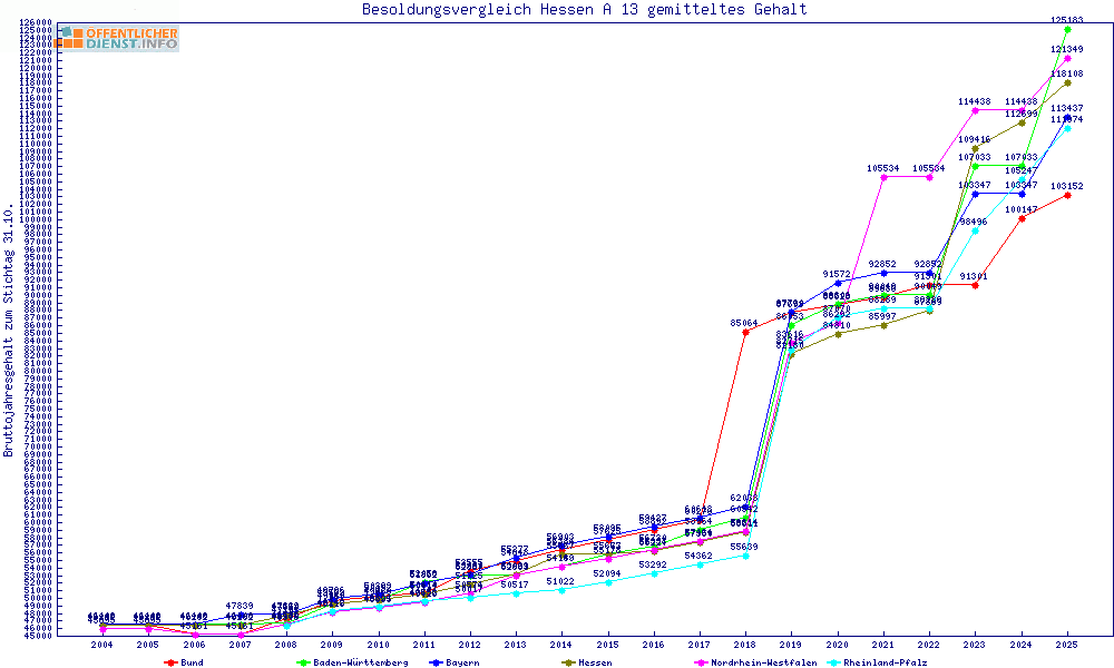 | Besoldungsvergleich A 13 im Jahr 2025 | gemitteltes Gehalt | ||||||