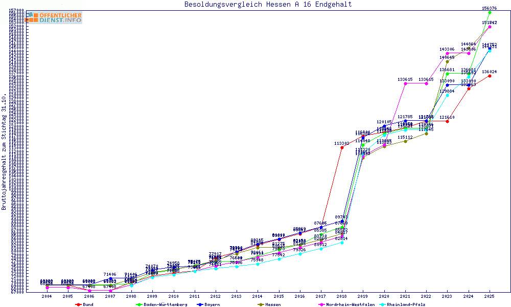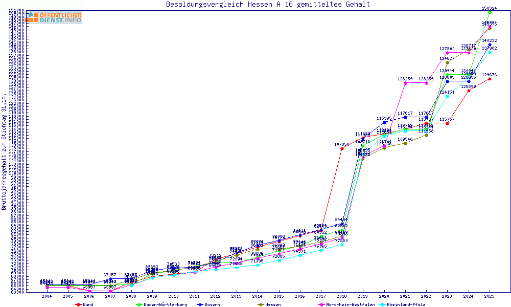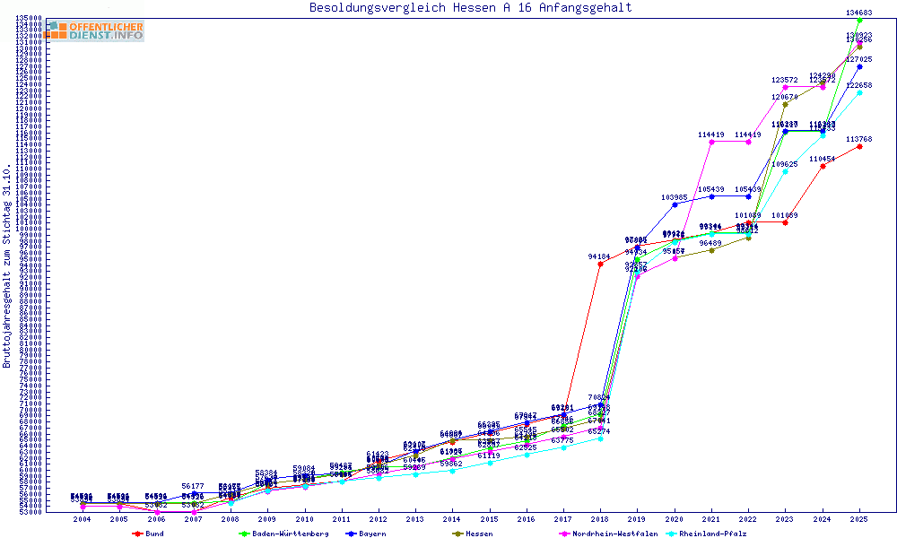 | Besoldungsvergleich A 16 im Jahr 2025 | Anfangsgehalt | ||||||