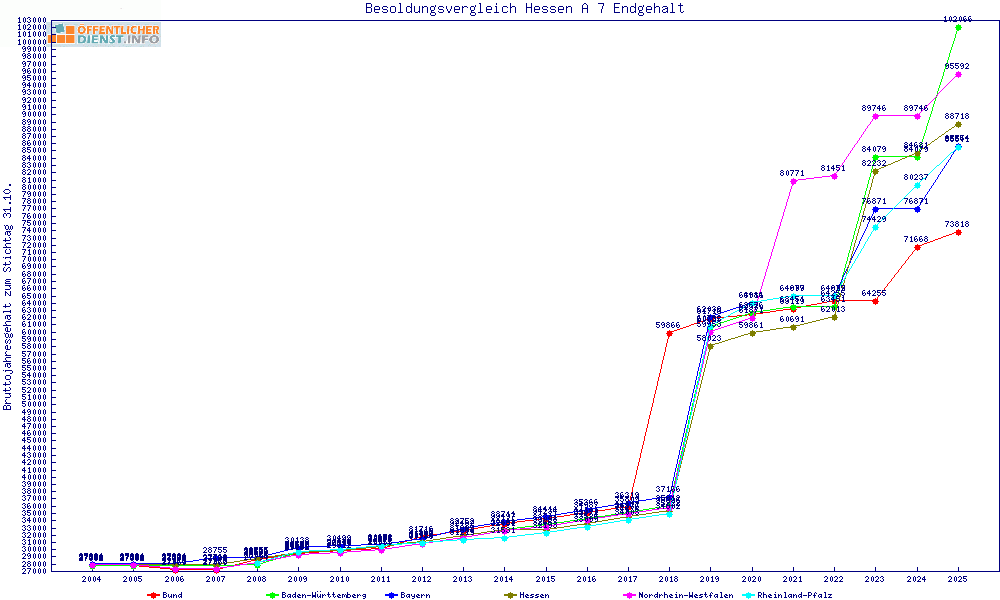 | Besoldungsvergleich A 7 im Jahr 2025 | Endgehalt | |||||||