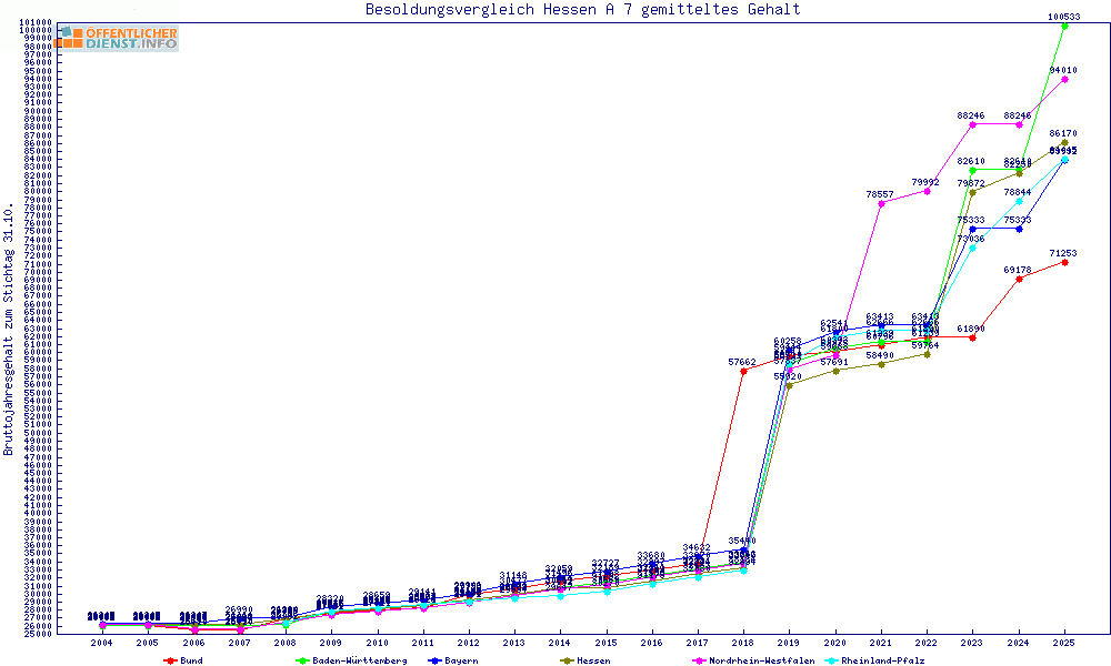 | Besoldungsvergleich A 7 im Jahr 2025 | gemitteltes Gehalt | ||||||
