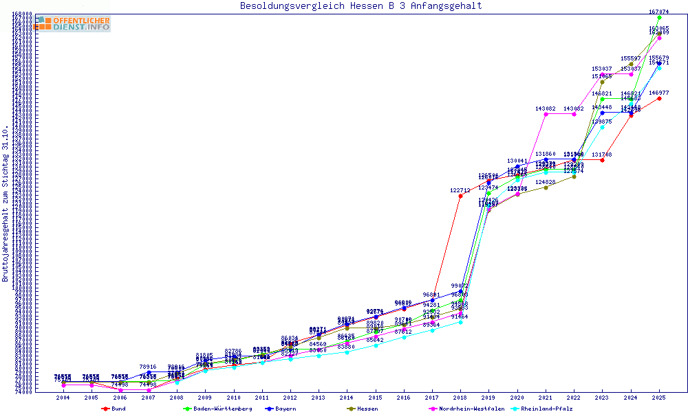| Besoldungsvergleich B 3 im Jahr 2025 | gemitteltes Gehalt | ||||||