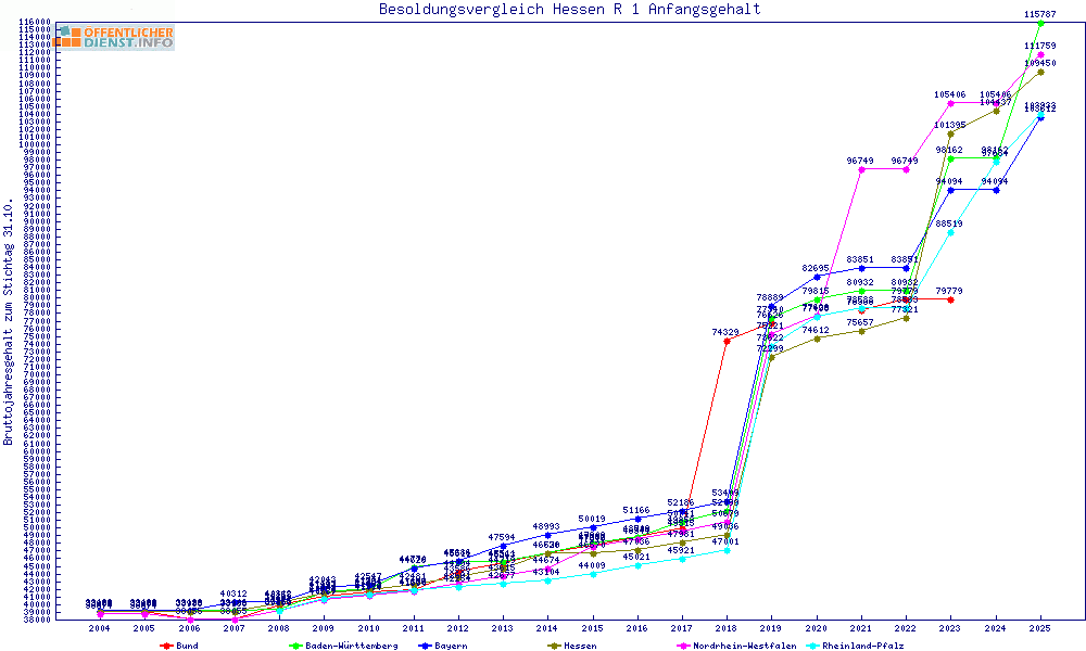| Besoldungsvergleich R 1 im Jahr 2025 | Anfangsgehalt | ||||||