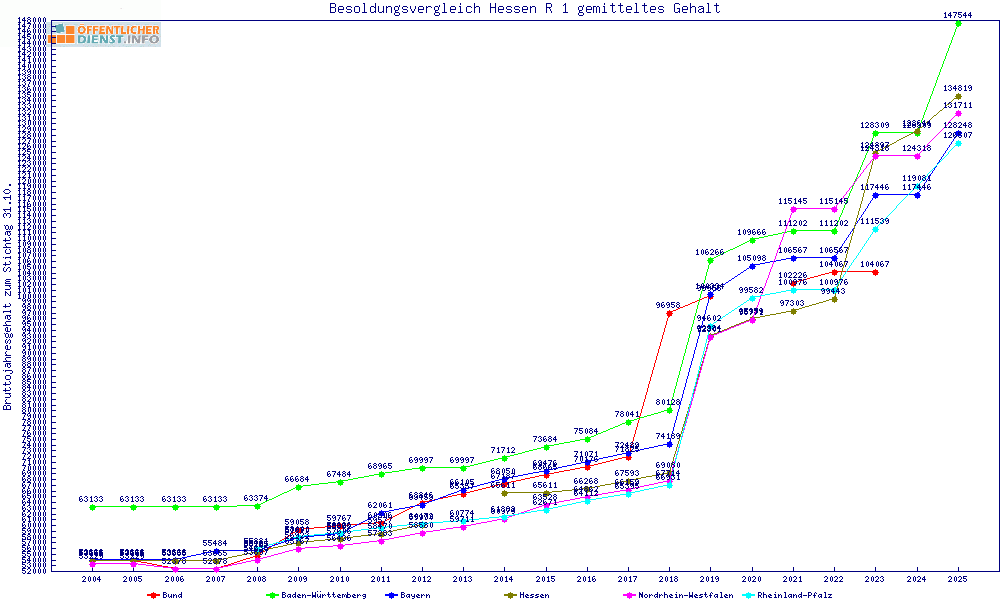 | Besoldungsvergleich R 1 im Jahr 2025 | gemitteltes Gehalt | ||||||